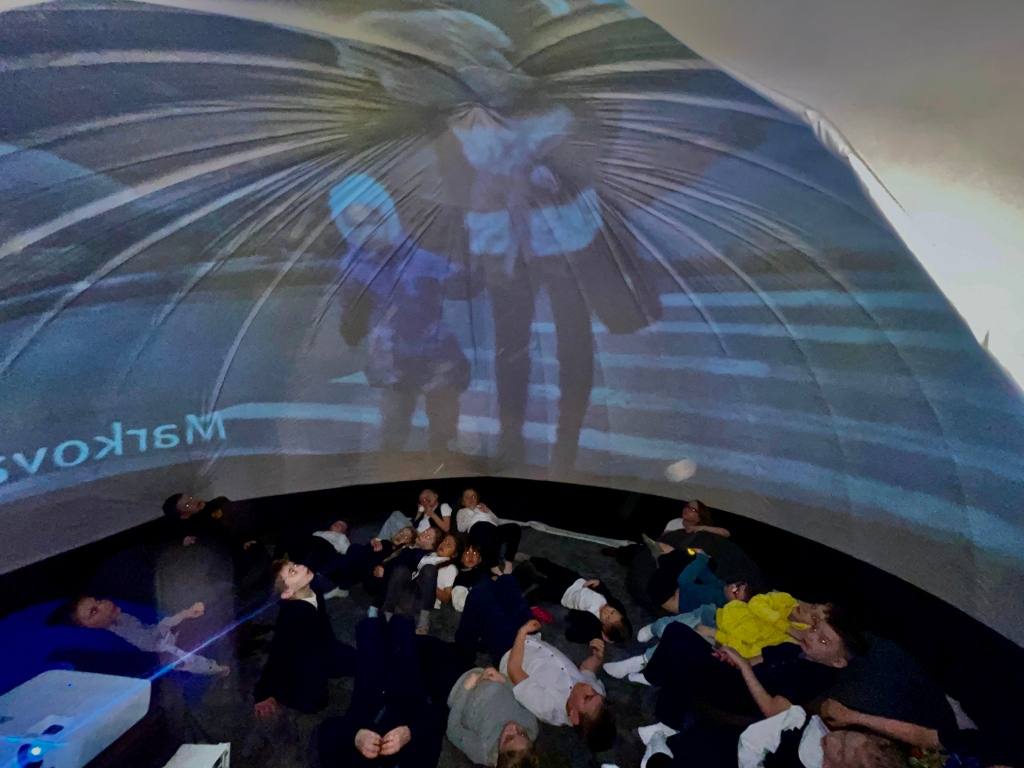 для обучающихся Школы «Открытие» Госавтоинспекцией проведен увлекательный и познавательный урок дорожной безопасности «Дорога не космос – пешеход не космонавт!» в школьном планетарии: там создается эффект погружения на 360 градусов, изображение выводится на всю поверхность сферического купола.