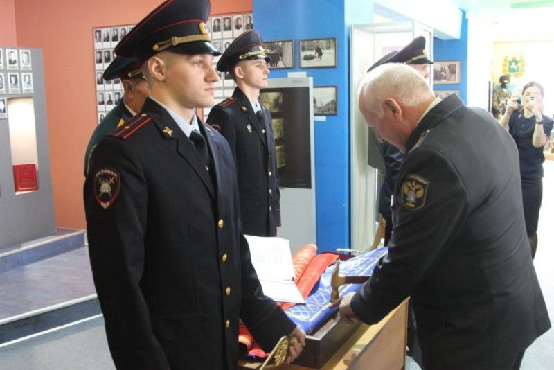 В торжественном ритуале крепления полотнища знамени Ветеранской организации органов внутренних дел Томской области приняли участие врио начальника Регионального УМВД полковник полиции Дмитрий Амелин, заместитель начальника УМВД России по Томской области полковник полиции Вячеслав Юшкевич, а так же члены Томской региональной общественной организации ветеранов органов внутренних дел.