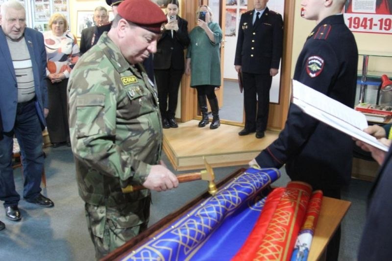 Почетное право крепления полотнища знамени к древку было предоставлено членам ветеранской организации.