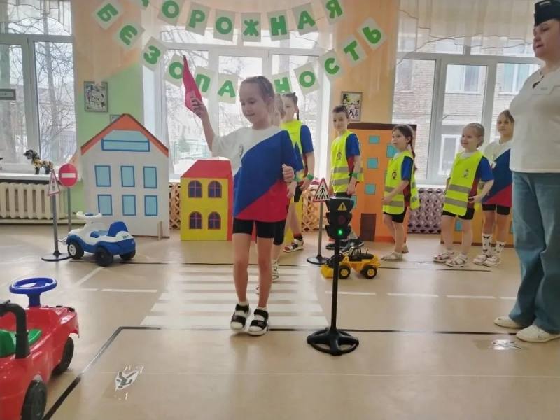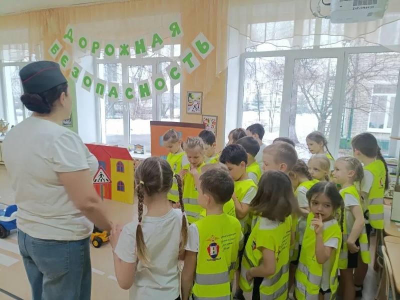 Инспектор пропаганды БДД Госавтоинспекции задавала детям интересные вопросы, моделировала ситуации на дороге и помогала разобрать ошибки. За выполненные задания дети получали в свою копилку жетоны безопасности.