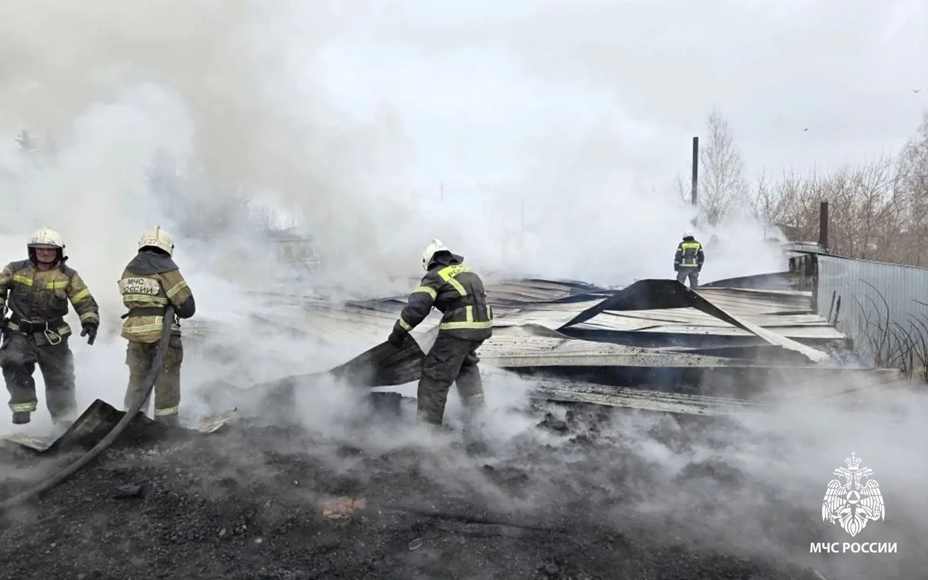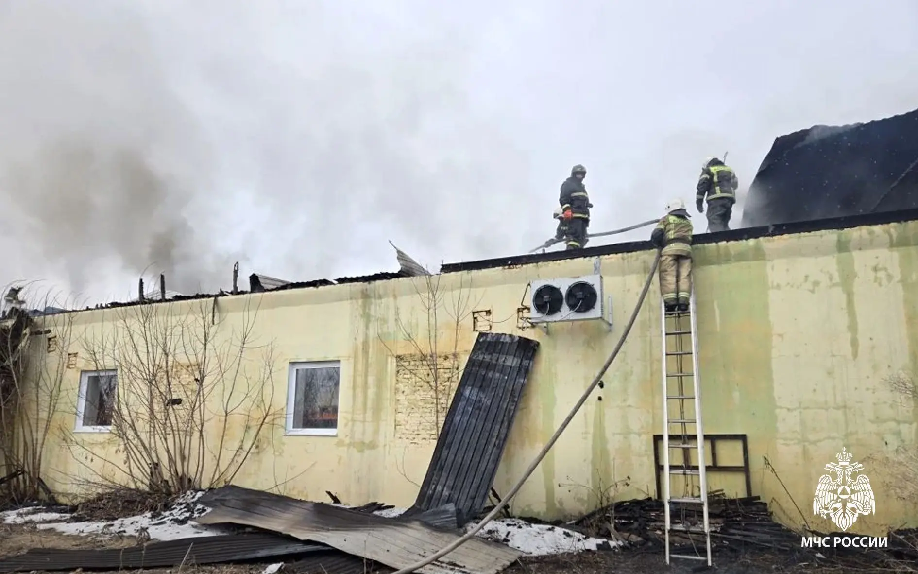 Предварительная площадь пожара 1200 квадратных метров. На месте работают 16 огнеборцев МЧС России и 5 единиц техники.