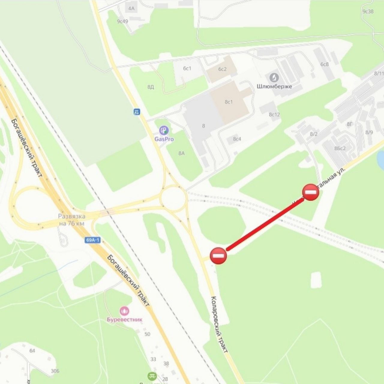 Движение транспорта на улице Континентальной от Коларовского тракта до дома 8в будет закрыто с 00:00 часов в воскресенье, 22 марта.