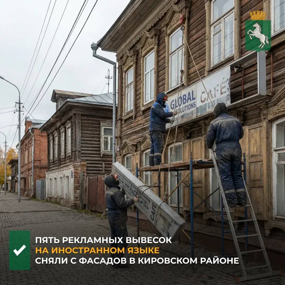Специалисты администрации Кировского района начали работу по выявлению и понуждению к демонтажу рекламных вывесок на иностранных языках. В результате на прошлой неделе собственники объектов демонтировали пять рекламных конструкций на иностранном языке в добровольном порядке.