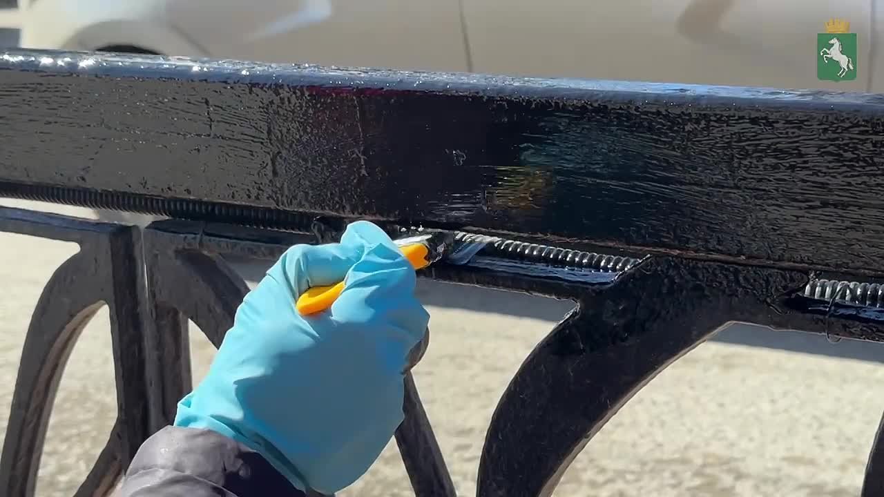 Город готовится встречать тепло! Сегодня рабочие начали красить чугунные заборы вдоль пр. Ленина.