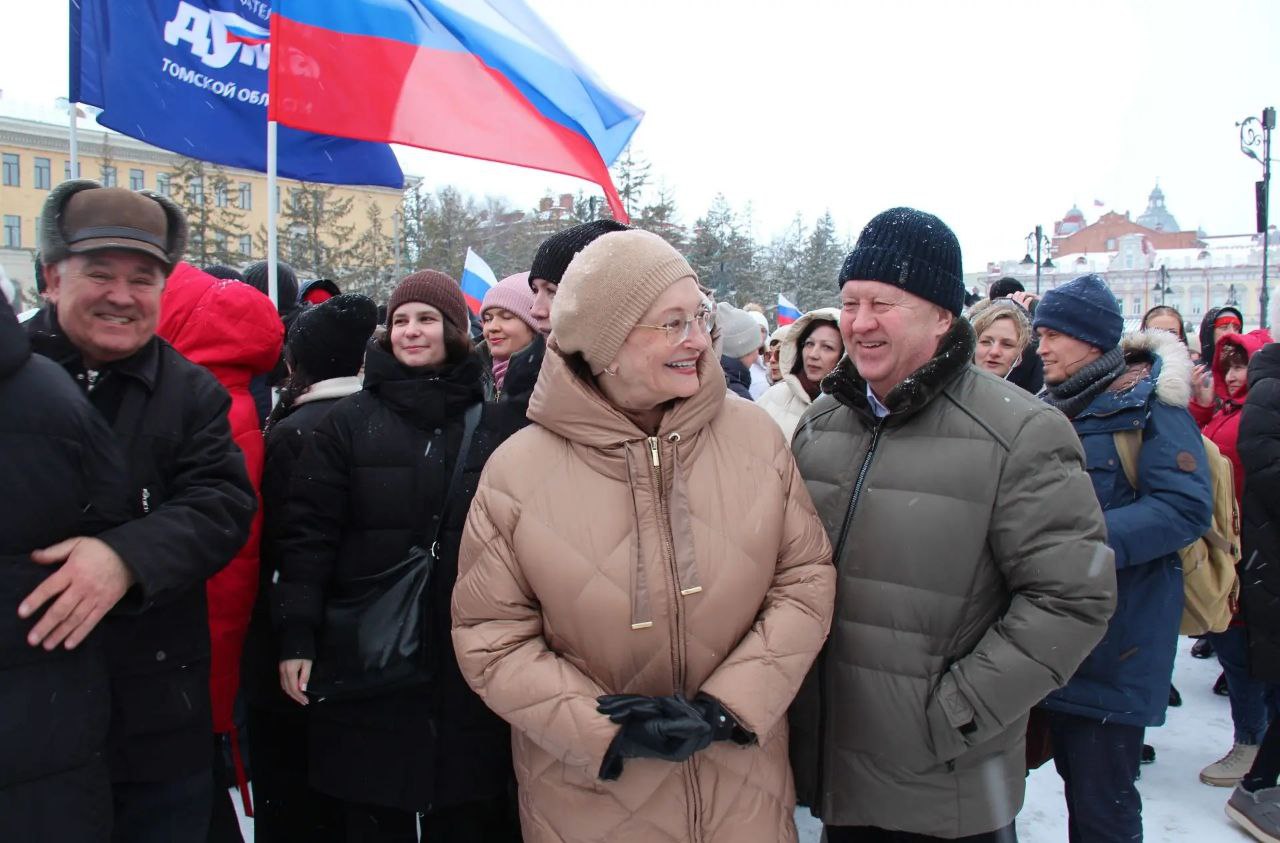 В торжественном мероприятии в День воссоединения Крыма и Севастополя с Россией, состоявшемся на Новособорной площади, вместе с жителями Томска приняли участие губернатор области Владимир Мазур, председатель Законодательной думы Оксана Козловская, депутаты регионального парламента и Думы города, представители политических партий и общественных организаций.
