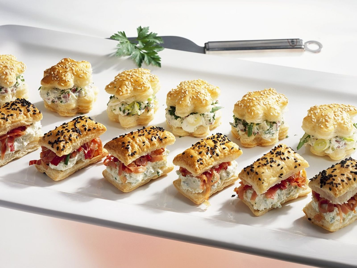 Закуски из слоеного теста — это отличный способ порадовать гостей на празднике. Они могут быть представлены в разнообразных формах: мини-пирожки, слойки или корзинки. Начинки варьируются от сырных до мясных и овощных, что делает каждую закуску уникальной. Легкая хрустящая корочка в сочетании с насыщенной начинкой обязательно станет звездой новогоднего стола.