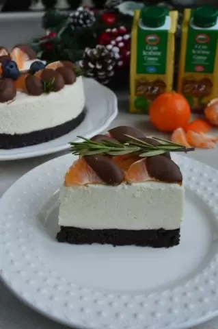 Если новогодние эмоции еще не пришли, стоит попробовать этот восхитительный чизкейк. Он сочетает в себе свежесть цитрусовых и шоколадный вкус, а также легкий кремовый слой и хрустящую песочную основу.