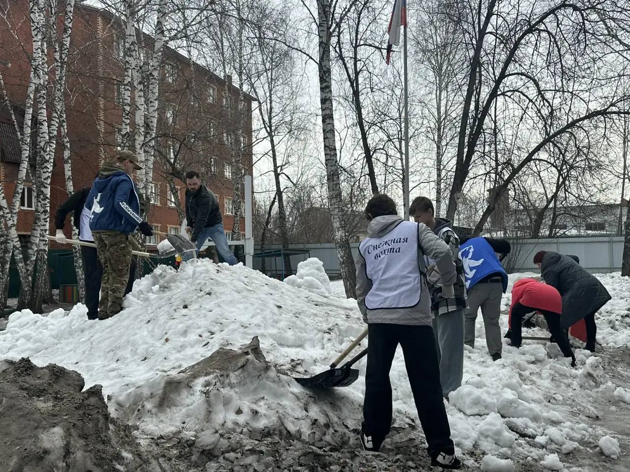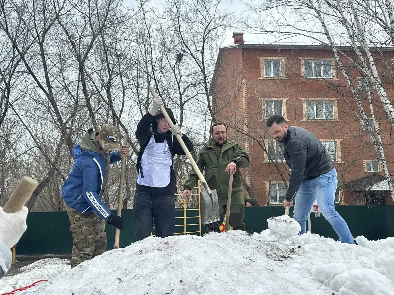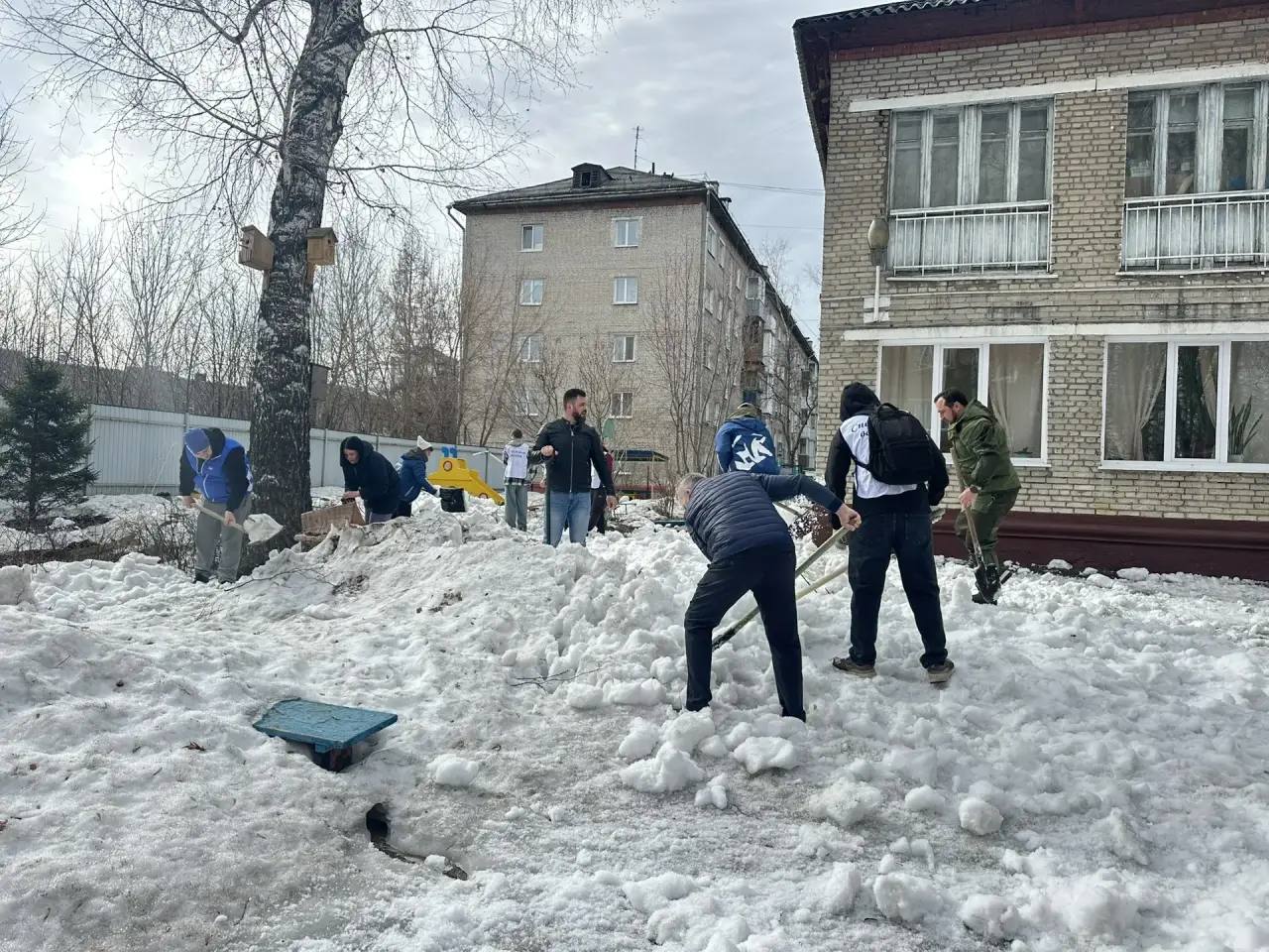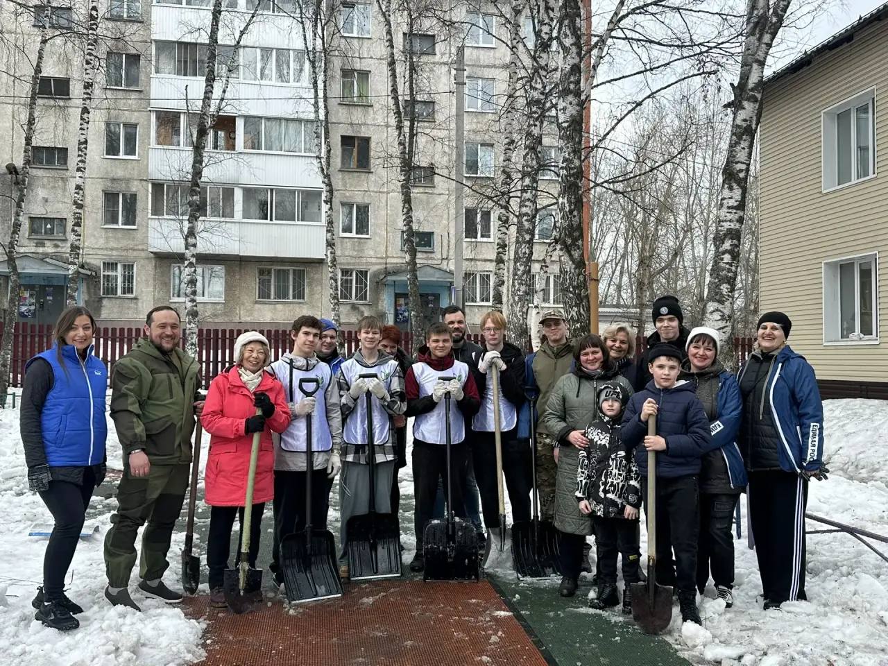 Дружной командой из 20 человек удалось оперативно привести территорию в порядок: убрали скопления снега с газона и детских площадок, очистили наледь с тропинок, обеспечили комфортный проход для детей и родителей.