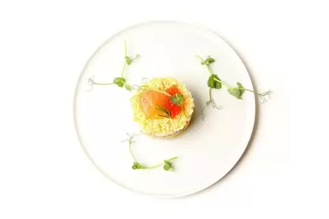 - Приготовление: Отварите картошку и морковь в кожуре, остудите и очистите. Варивайте яйца и нарежьте все ингредиенты (картошку, морковь, яйца, сыр) и нарежьте рыбу. Смешайте майонез и сметану. Сформируйте слои: картофель, рыба, морковь, белок, сыр и желток, каждый слой смазывайте соусом.