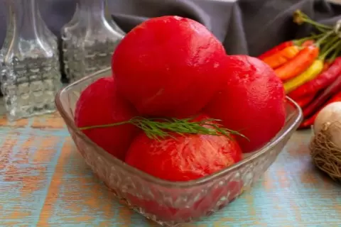 Готовый рассол заливается в емкость с помидорами, добавляется уксус. Затем посуду следует закрыть и оставить помидоры при комнатной температуре на сутки. На следующий день можно оценить результат: появление характерного запаха квашения и помутнение рассола подскажет, что работа выполнена успешно. Помидоры готовы к подаче и могут радовать вкусом уже через день.