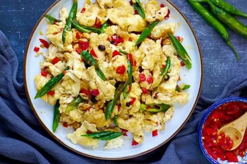 Яичница с квашеным чили — это невероятное блюдо из провинции Хунань, которое завораживает своим насыщенным и пикантным вкусом. Это восхитительное угощение станет настоящим открытием для всех любителей острых блюд.