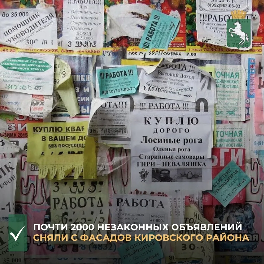 С начала года специалисты администрации Кировского района ликвидировали порядка 2000 экземпляров печатной рекламной продукции, незаконно размещенных на фасадах зданий, остановках, опорах освещения, урнах и в других местах.