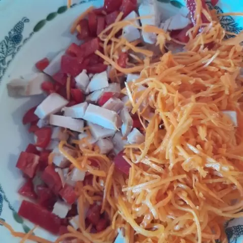 Салат с копченой курицей и корейской морковью