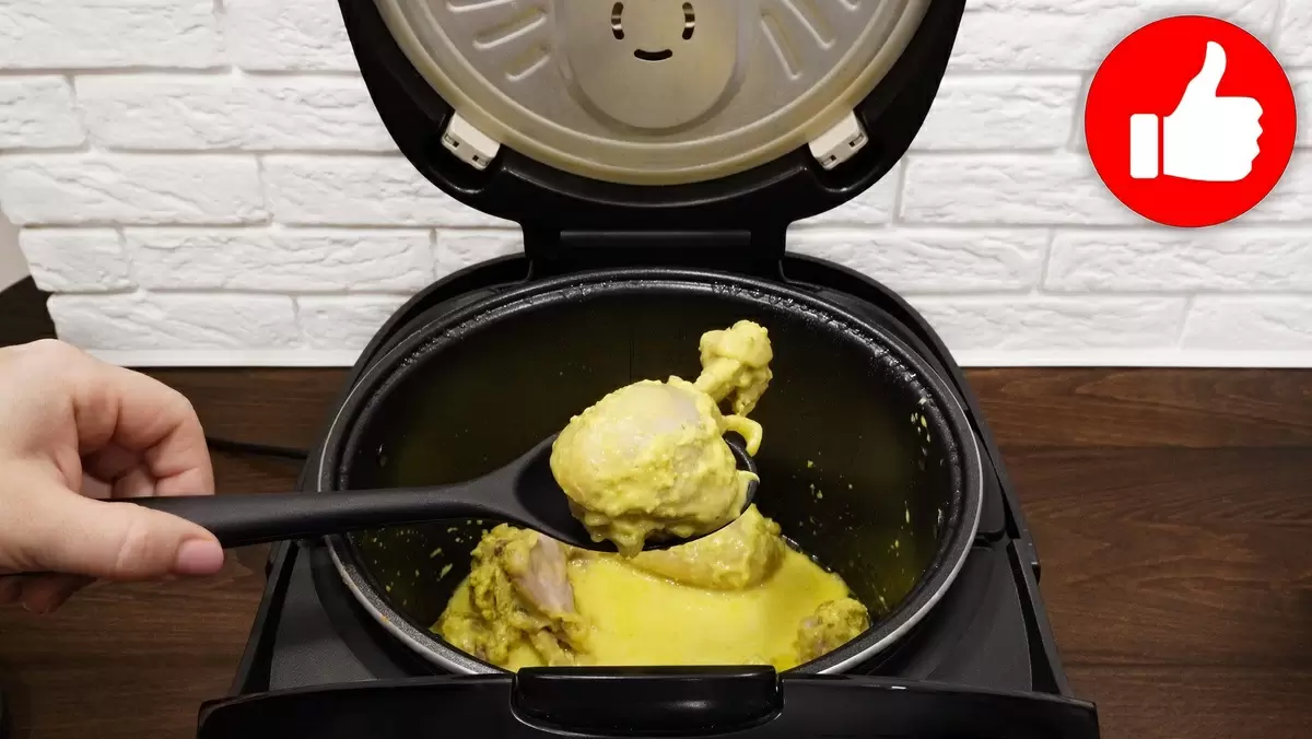 Далее выбираем режим «Тушение» или «Мультиповар» с температурой 110°C и готовим на протяжении 60 минут. Это позволит курице стать невероятно нежной и насыщенной вкусом.