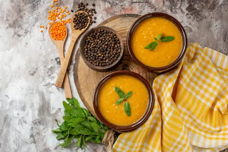 Животного белка в рационе нет, и его нужно чем-то заменить. Бобовые — лучший выбор. Обратите внимание на чечевицу, которая быстро готовится (красная — всего за 15 минут) и отлично подходит для супов-пюре, нут — идеальный вариант для хумуса, и, конечно, маш с фасолью.