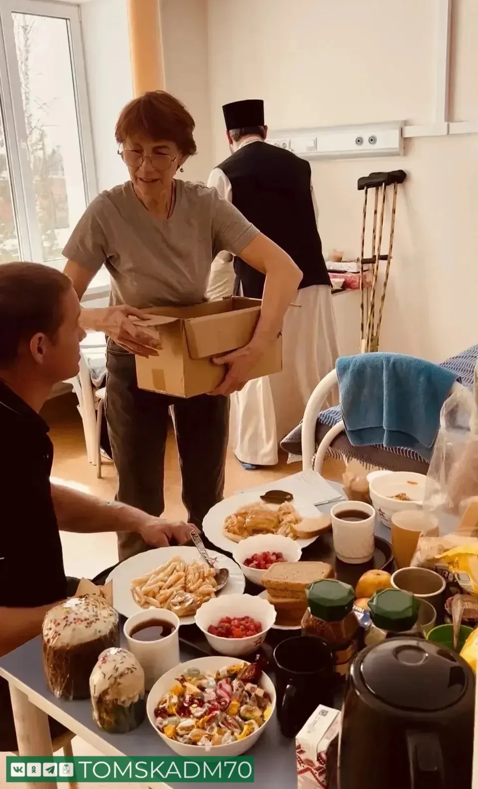 - Поздравили бойцов с прошедшей Пасхой, конечно, привезли каждому кулич. Также привезли ребятам специальное бельё на липучках, которое сшили волонтёры из группы «Шьём сами», продукты и домашние консервы собрали наши активисты. У всех настроение боевое, — рассказал руководитель городского совета ветеранов Николай Мозель.