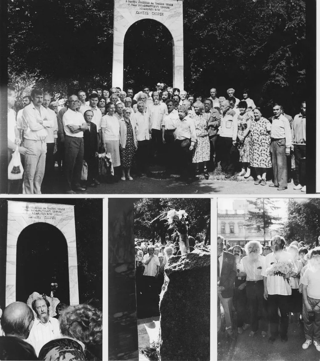 На фото: русский писатель, ветеран Великой Отечественной войны и узник ГУЛАГа Александр Солженицын у Камня скорби в Томске, лето 1994 года. Позавчера власти города снесли мемориал.