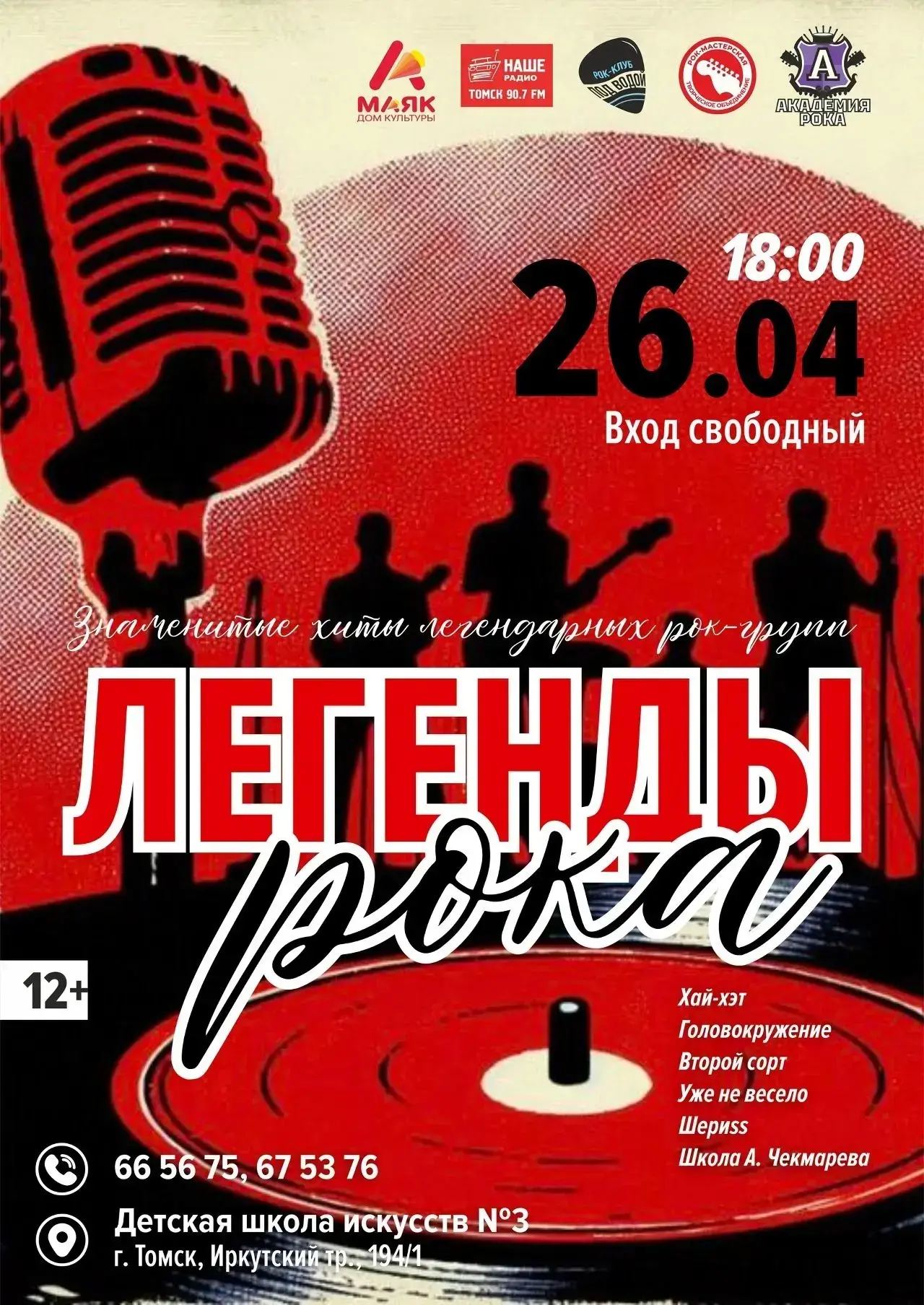 В воскресенье, 26 апреля, в 18.00 в Детской школе искусств №3 (Иркутский тракт, 194/1) состоится концерт «Легенды рока», организованный молодёжным рок-клубом «Под водой».