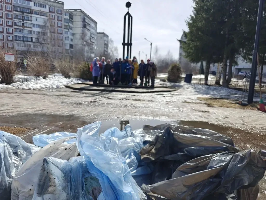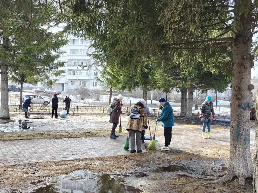 Совет ветеранов прибрал во время субботника территорию у памятного мемориала в пос