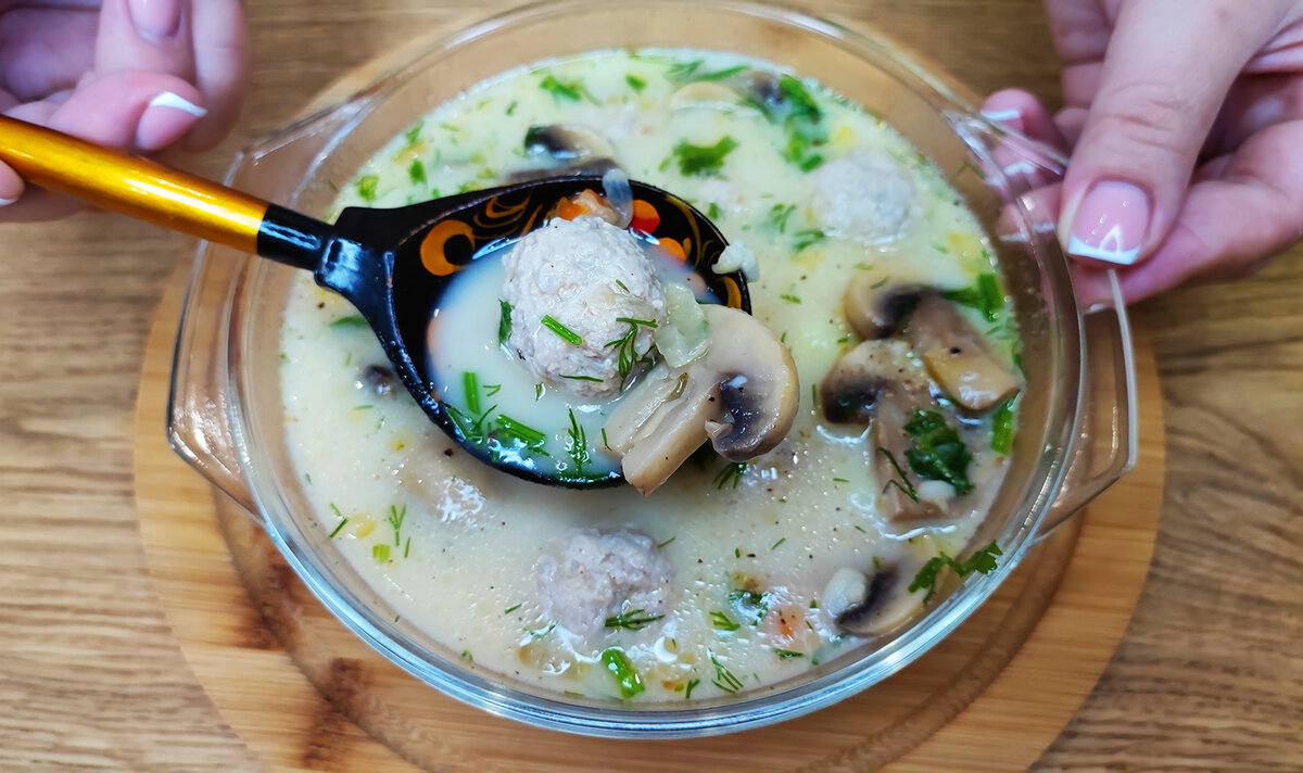 Этот суп — идеальный выбор для семейного обеда. С ароматом грибов, нежными фрикадельками и легким сливочным акцентом он всегда становится хитом на столе. Важные компоненты, которые понадобятся для его приготовления: