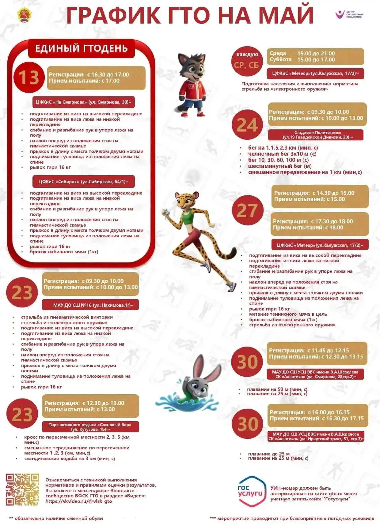 График тестирований по нормативам комплекса ГТО — в прикреплённом файле.