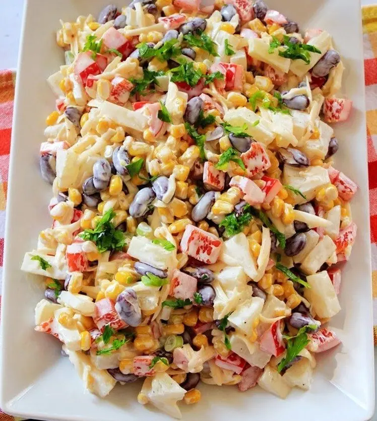 Яркий салат с крабовыми палочками
