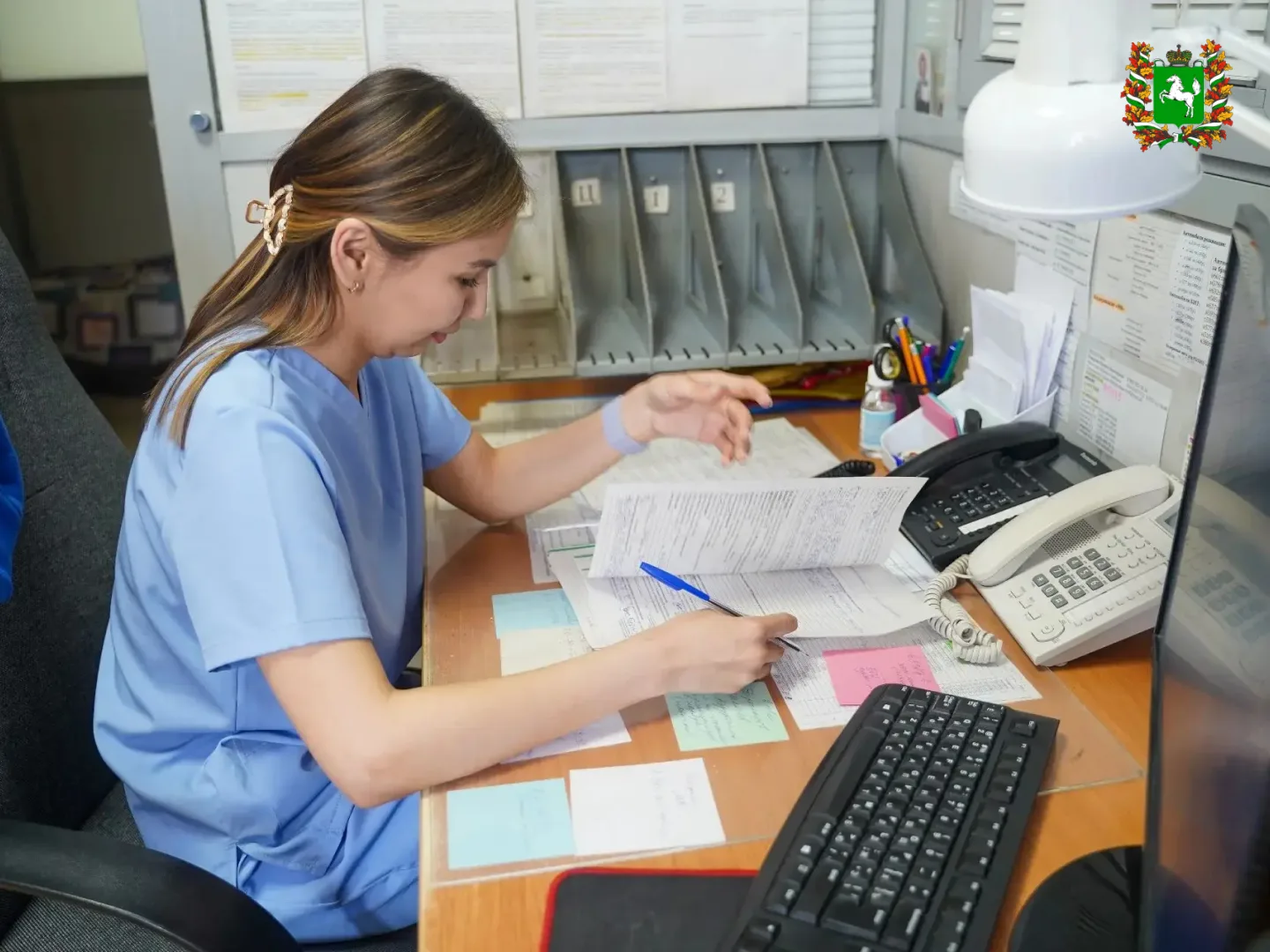 Главный фельдшер станции Надежда Андреевна работает в скорой помощи с 1982 года и первый свой выезд помнит, будто он был вчера – молодого специалиста отправили принимать роды. В 2014-м Надежду Андреевну Указом Президента России наградили Орденом дружбы. Сейчас вместе с Томским базовым медицинским колледжем она обучает студентов, став для них мудрым наставником. На станции молодежь принимают на стажировку уже со второго курса.