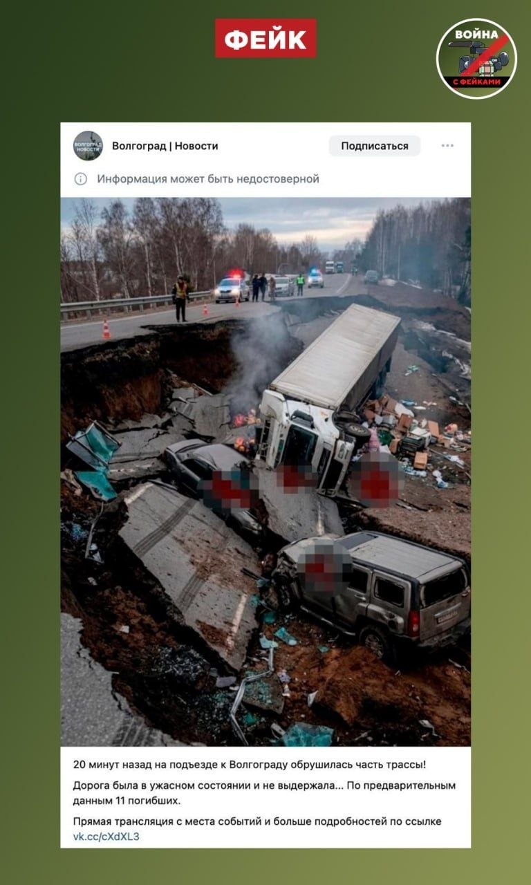 Фейк: В ряде регионов произошла страшная трагедия: обрушилась часть трассы, 11 человек погибли. Кадры с места ЧП появились в соцсетях.