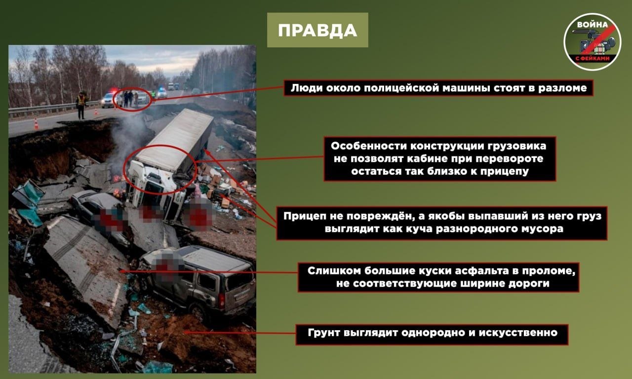 Правда: Вышеупомянутого ЧП не было ни в одном регионе РФ. Распространяемое «фото» сгенировали с помощью ИИ. В постах с фейком есть скрытая реклама — ссылки ведут на боты и закрытые каналы.