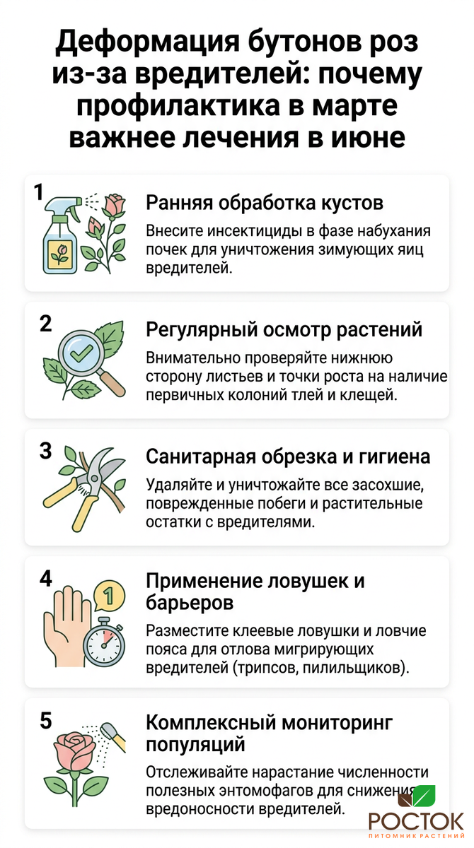 В июне садоводы с нетерпением ждут, когда их розы наконец распустят свои бутончики. Но бывает, что вместо восхитительных цветов появляется лишь разочарование: изогнутые побеги, обожженные лепестки и пятна на листьях. Разберемся, почему профилактика в марте значительно важнее сложных мер в июне.